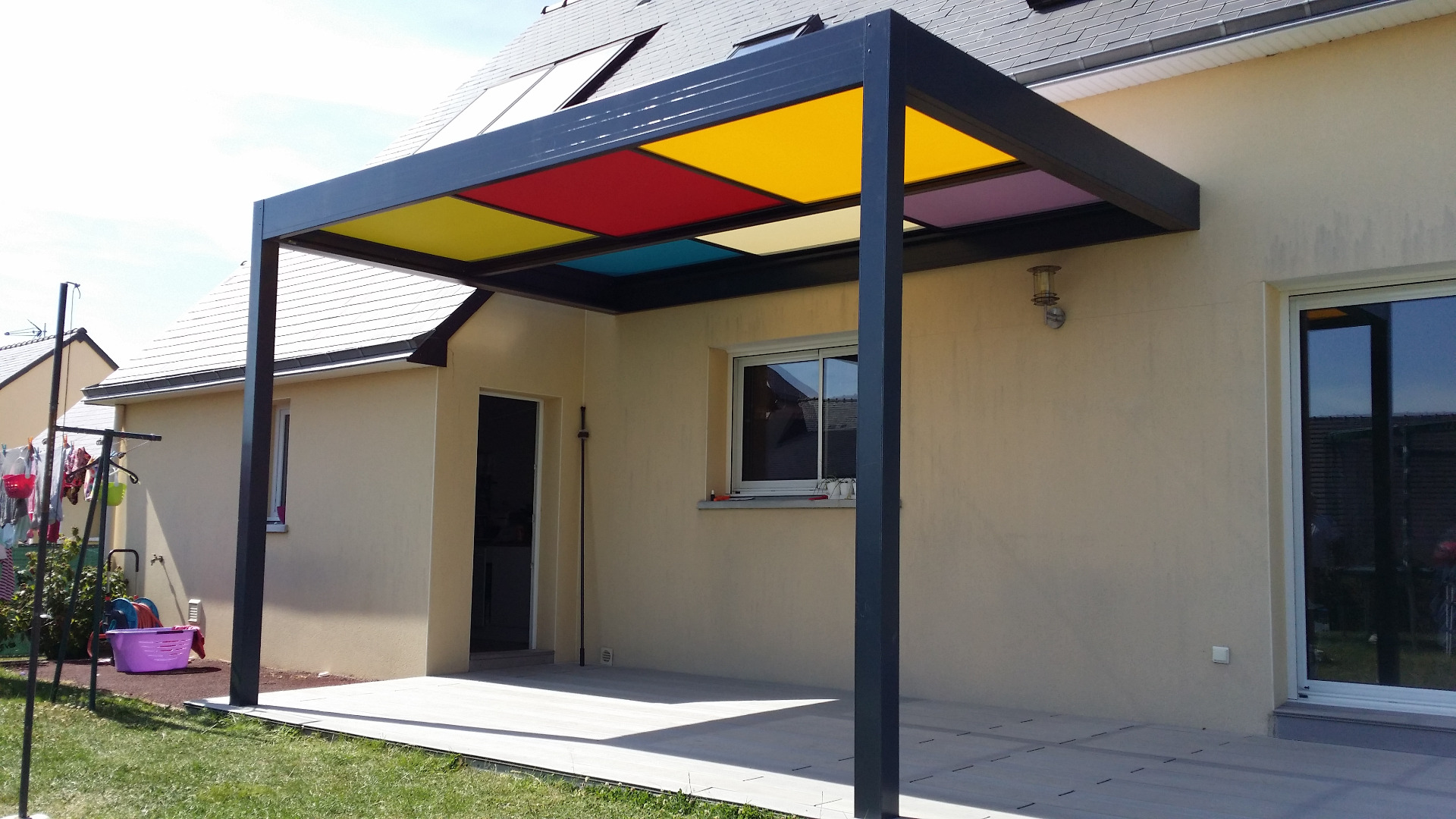 La pergola ARLEQUIN réinvente le concept de couverture de terrasse avec ses panneaux de couleurs et cadres coulissants. Solution intermédiaire entre la pergola bioclimatique et l'auvent en toile, ARLEQUIN est un nouveau concept qui donne le ton pour personnaliser votre espace extérieur.